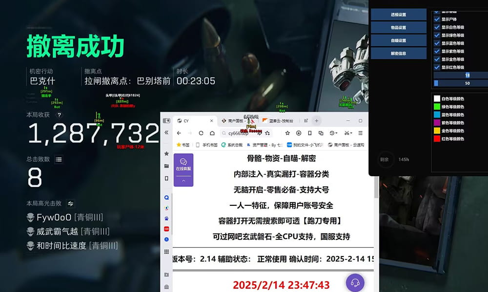 想象一下,在激烈的三角洲战场中,凭借着这款自瞄辅助,你能够快速准确地打击敌人,成为战场上的焦点。全系统兼容Win10/11的特性,让你无需担心系统不匹配的问题,尽情沉浸在游戏的畅快体验之中。这款三角洲自瞄辅助,无疑为广大玩家打开了一扇通往更精彩游戏世界的大门。